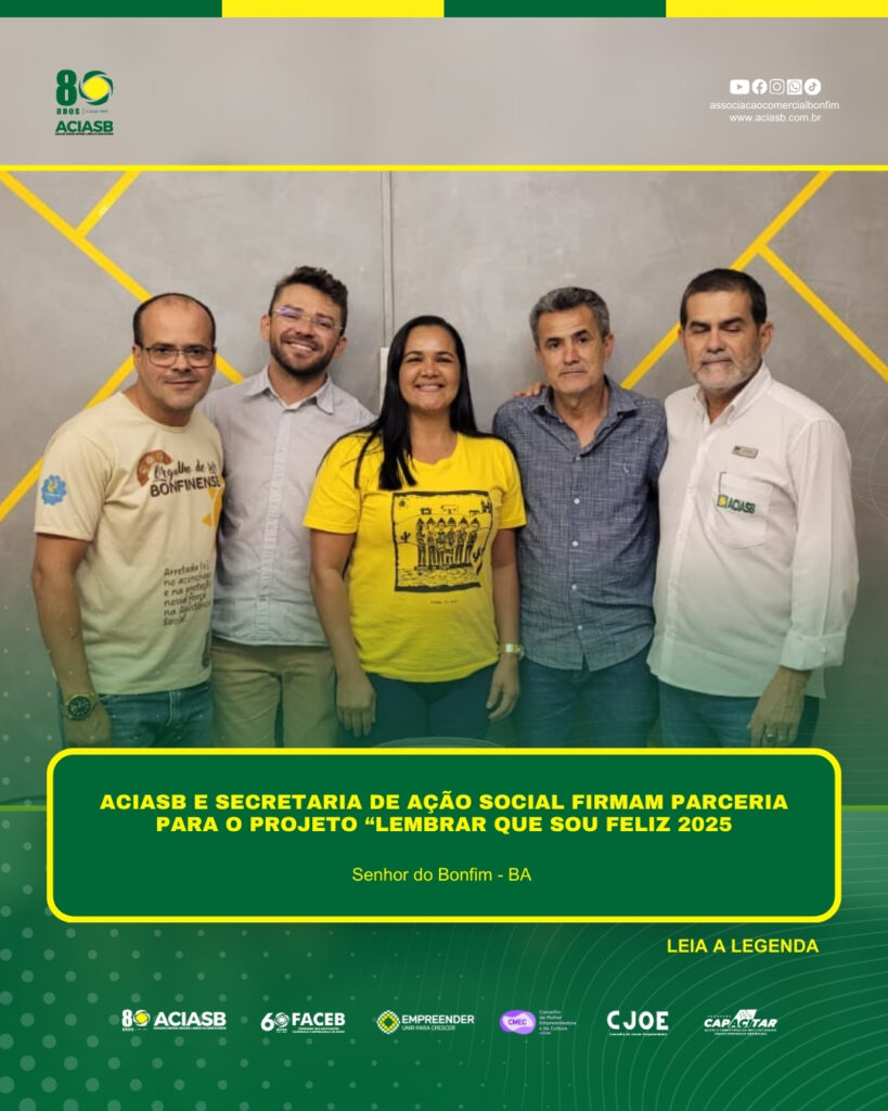 Foi discutida uma parceria com a Secretaria de Ação Social para a realização do Projeto “Lembrar que Sou Feliz 2025”. A iniciativa tem caráter social e visa integrar ações voltadas ao bem-estar da comunidade, fortalecendo o compromisso da ACIASB com o desenvolvimento humano e social de Senhor do Bonfim.