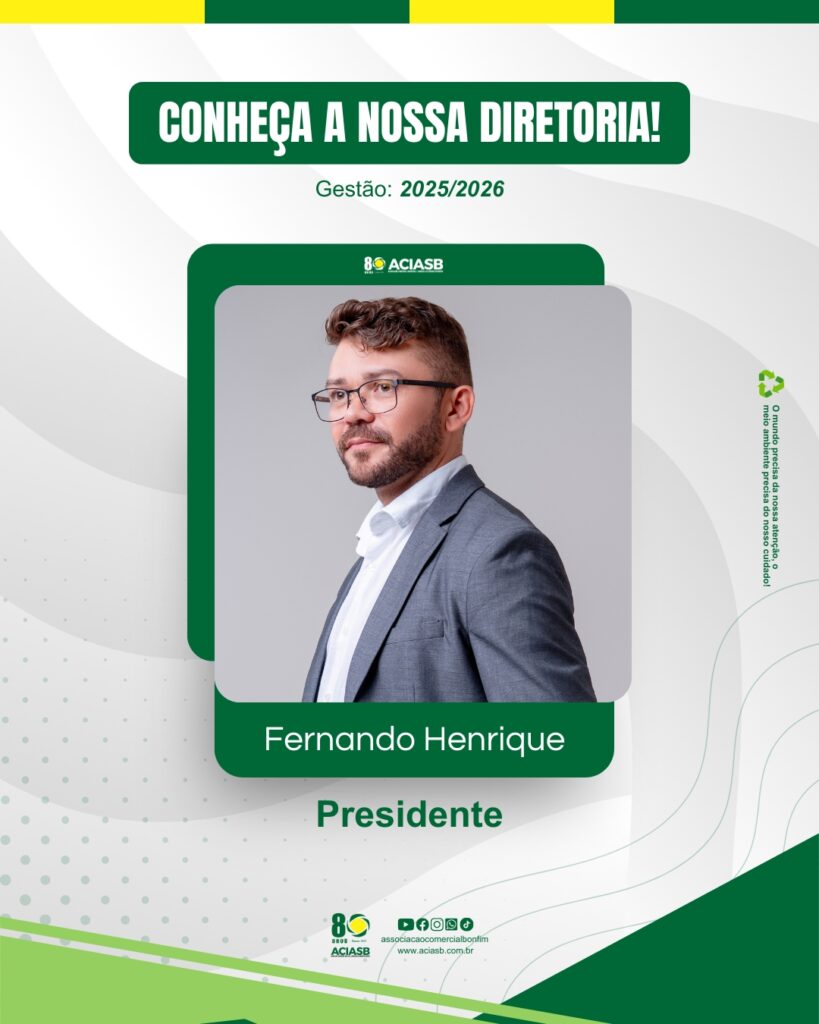 🌟 Liderados por Fernando Henrique (Presidente) e Regivan Gomes (Vice-Presidente), cada integrante desempenha um papel essencial na construção de uma ACIASB ainda mais forte, inovadora e conectada com a comunidade empresarial.